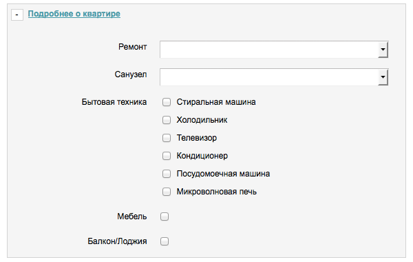 Теперь при продаже квартиры или комнаты возможно указать такую дополнительную информацию как наличие мебели, бытовой техники, тип покрытия пола или вид из окон. Для аренды квартир это также такие немаловажные для клиентов пункты как наличие магазина поблизости, возможность съема с детьми или животными. Для домов и коттеджей список был расширен телефоном, интернетом, мебелью и бытовой техникой.