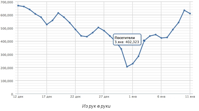 И уже с 3 января – посещаемость возращается на уровень предновогодних дней: