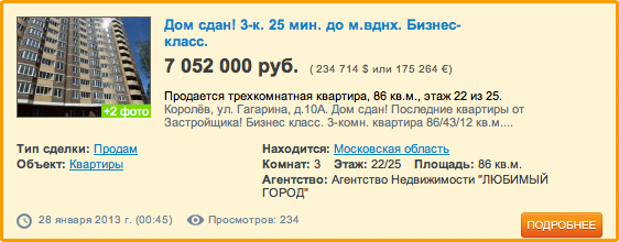 Пример премиум-объявления: