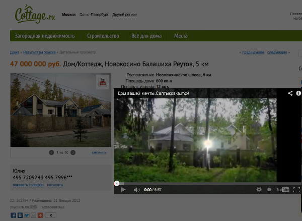 Использование видео очень актуально для объектов недвижимости: видео-тур по квартире или загородному дому покажет клиенту всю притягательность этого объекта не отходя от компьютера и позволит сэкономить время на ненужных показах.